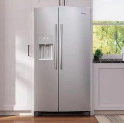 The Frigidaire Gallery GRSS2652AF side-by-side refrigerator is designed to keep food fresh and organized. It also looks great and offers convenience with an external ice and water dispenser and smudge-proof stainless steel finish.