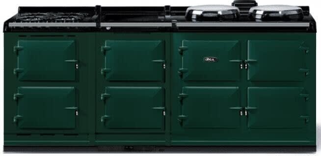 In addition to all the features of your main AGA eR7 100 range, this 210 model configuration provides ample cooking space with slow cook and warming ovens, a large warming plate atop one of the hotcupboards, as well as an additional conventional oven with electric broiler, convection oven with fan, and 4-top gas burners.Read More