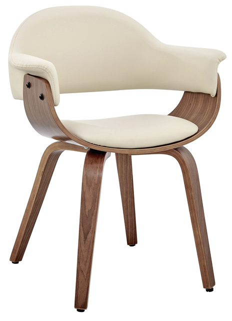The open-back design offers breathable seating, combined with the soft foam padded cushion - this chair will make you want to stay seated all day long. The rich fabric is alluring and authentic, looking great, and performing well is what we offer to our customers with every product. Place this chair in any room of your home to help update your decor! The Adalyn accent chair is available in your color choice of grey, cream, or black faux leather with walnut wood or grey faux leather with black wood.