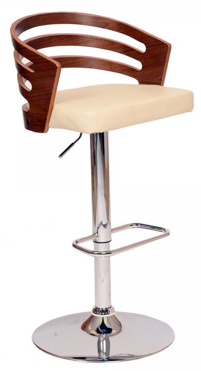 Take a seat in the snazzy Adele adjustable air-lift swivel barstool, featuring a walnut back and plush leatherette seating.