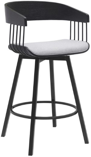 An enveloping silhouette and padded seat promise a comfortable sit in a kitchen or lounge. Our barstool is available in both faux leather and high-performance fabric to best suit the daily wear and tear of your home. Expertly crafted from metal and engineered wood, the counter stool shows off a mixed material elegance to work well anywhere from your kitchen to a home office. It can complement a kitchen island, pub table, home bar, or adjustable desk, bringing a dose of style and comfort. Our modern bar stool comes with a wonderful 360-degree swivel with a smooth gliding system, allowing you to join conversations around the counter or work with ease and efficiency. The Athena swivel bar or counter stool easily incorporates into any home and is available in your choice of 27-inch or 31-inch seat height in a walnut wood finish with black, cream, and gray faux leather upholstery or a black wood finish with your choice of light gray or blue fabric or gray faux leather upholstery.
