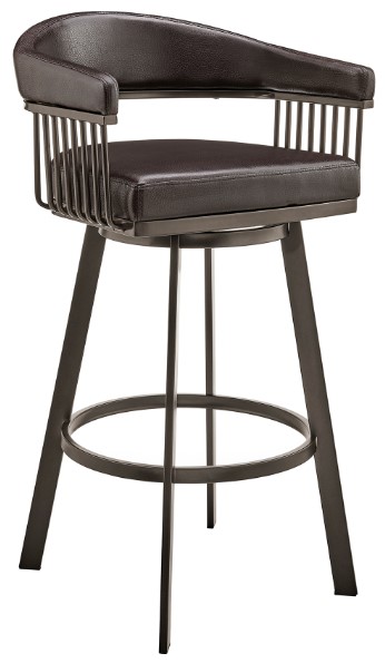 The foam-padded seat cushion offers you the most comfort available to you! This curved open-back stool will keep you relaxed while enjoying dinner with your friends and family. The Bronson also features a convenient metal footrest, for additional support and stability. The Bronson comes in a variety of colors and finishes; black, gray, and white faux leather with brushed stainless-steel finish, black or vintage gray faux leather with black finish, chocolate faux leather and java finish, and white faux leather with silver finish. All color options are available in your choice of 25" counter height and 29" bar height.