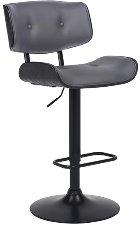 The Brooklyn Stool is available in your choice of a black base with black, cream, or grey faux leather upholstery or a chrome base with grey faux leather and black wood.
