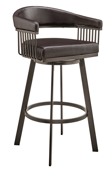 The foam-padded seat cushion offers you the most comfort available to you! This curved open-back stool will keep you relaxed while enjoying dinner with your friends and family. The Chelsea also features a convenient metal footrest, for additional support and stability. The Chelsea comes in a variety of color and finishes; black, gray, and white faux leather with brushed stainless-steel finish, black or vintage gray faux leather with black finish, chocolate faux leather and java finish, and white faux leather with silver finish. All color options are available in your choice of 26” counter height and 30” bar height.