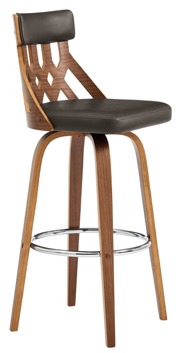 The intricately designed chair back of Crux Swivel Bar Stool is a work of art with itself, leaving you with an incredibly refined piece of furniture in your home. The Crux is also crafted with a ring footrest - meaning you can relax your feet regardless of the direction you decide to turn! The Crux is available in your color choice of grey or cream faux leather with walnut wood or grey faux leather with black wood, also available in 26” counter height and 30” bar height.
