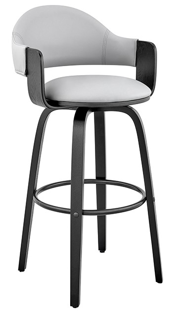 The Daxton 26" Gray Faux Leather and Black Wood Bar Stool will complement the existing decor in your home and help elevate it to the next level. The Daxton features a 360-degree swivel function that allows you to keep the conversation going in every direction.Read More