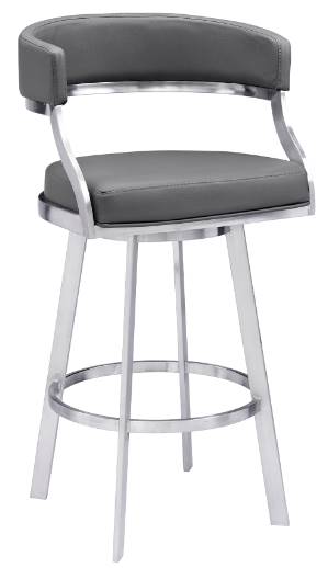 The Dione 30" Bar Height Swivel Grey Faux Leather and Brushed Stainless Steel Bar Stool from Armen Living is a unique addition to any home or apartment. The Dione’s soft faux leather upholstery is wrapped around a high-density cushion that cover the back and seat of the kitchen stool, providing you with optimal comfort.Read More