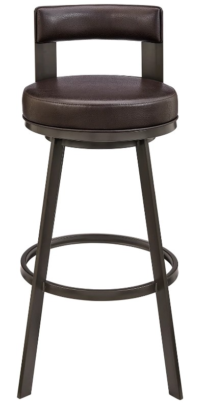 Counter or bar height stools that feature a swivel mechanism tend to be much more convenient for everyday use or when entertaining. The wonderful full 360-degree swivel function allows for maximum mobility. The smooth glide swivel function allows you to change directions with ease, making this your new favorite seat in your home. This modern bar stool has an open back that creates a breathable seat, allowing you to sit comfortably for extended periods. Featuring a chic and streamlined profile, the modern counter stool features a subtly curved back. Complemented with a roomy round cushioned seat, our thoughtfully designed counter stool supports you in just the right places. The Flynn is available in a black finish with light grey faux leather, a brushed stainless-steel finish with black, white, or light grey faux leather, a brown finish with chocolate faux leather, or a silver with grey faux leather upholstery. This modern bar stool comes in your choice of 26-inch or 30-inch seat height options.