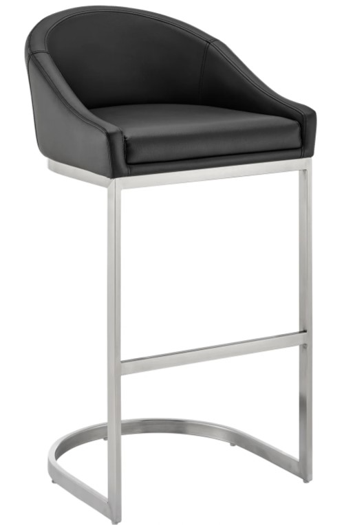 Offers outstanding support, and delivers a contemporary silhouette. This metal bar stool is upholstered in faux leather. Faux leather is stain resistant and it's also UV resistant. This modern bar stool is ideal for your kitchen island, pub table, home bar, or adjustable desk. Use universally in your home from your kitchen to your home office and allow its versatility to shine. The Katherine barstool is available in a counter or bar seat height and comes in a brushed stainless steel finish with black, grey, or white faux leather upholstery or a black finish with black or grey faux leather upholstery.