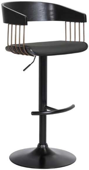 Anchored with a crisp and clean-lined metal frame, our multifunctional and modern barstool brings an eye-catching style to your home or apartment. It includes a padded seat upholstered in faux leather which does not crack or fade easily; the material is both stain and UV resistant for easy maintenance and longevity. Thoughtfully designed and crafted from metal and engineered wood, our counter stool brings durability and elevated functionality anywhere from your kitchen to a home office. A built-in footrest and lifting mechanism vouch for a better sitting experience where individuals of all heights can adjust to their optimal comfort. Our counter stool remains the perfect complement to a kitchen island, pub table, home bar, or desk. It comes with a 360-degree swivel function to offer maximum mobility, comfort, and convenience. The Larisa adjustable bar or counter stool easily incorporates into any home and is available in your choice of a walnut wood finish with black metal and your choice of black or gray faux leather, or a black and golden bronze finish with gray or black faux leather upholstery.