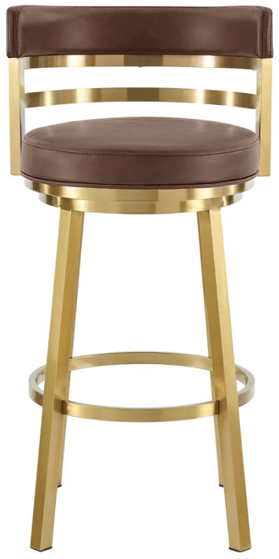 Glam up your space with our sleek and charming Madrid Swivel Counter or Bar Height Stool in Metal and Faux Leather by Armen Living. The streamlined silhouette and elegant mixed materials of our barstool offer eye-catching style and comfort.Read More
