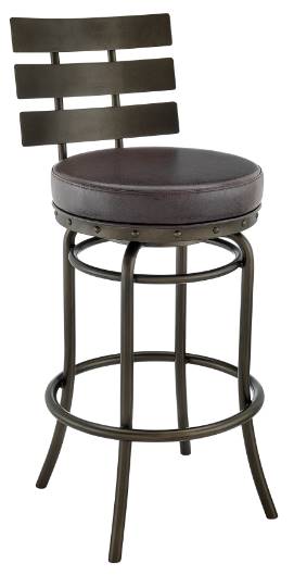 Enliven your home with the modern charm and elegance of our Natya Swivel Counter or Bar Stool in Faux Leather and Metal by Armen Living. A charming, slatted backrest is complemented with a gracefully curved metal base to invite a dose of style and comfort to your home.Read More