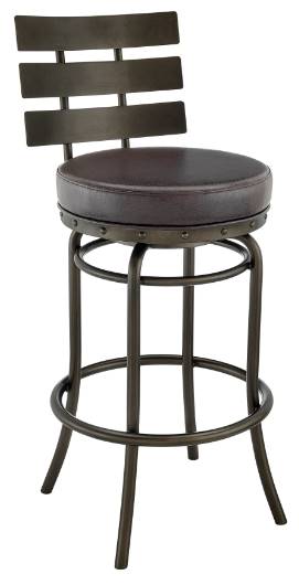 Enliven your home with the modern charm and elegance of our Natya Swivel Counter or Bar Stool in Faux Leather and Metal by Armen Living. A charming, slatted backrest is complemented with a gracefully curved metal base to invite a dose of style and comfort to your home.Read More