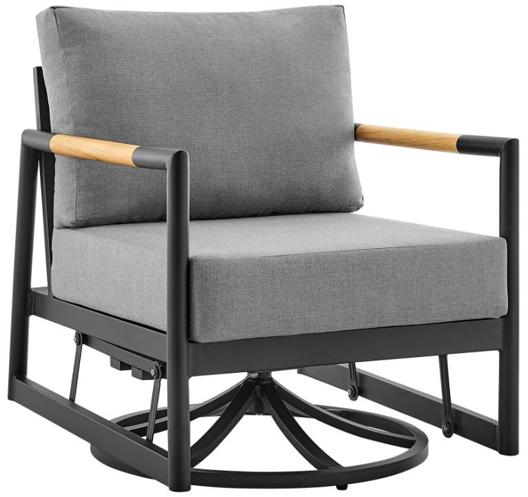 The Royal Outdoor Patio Swivel Glider Lounge Chair in Black Aluminum and Teak Wood with Cushions combines comfort and convenience. This outdoor gliding chair features durable and lightweight aluminum frame complete with warm teak accents on the arms.Read More