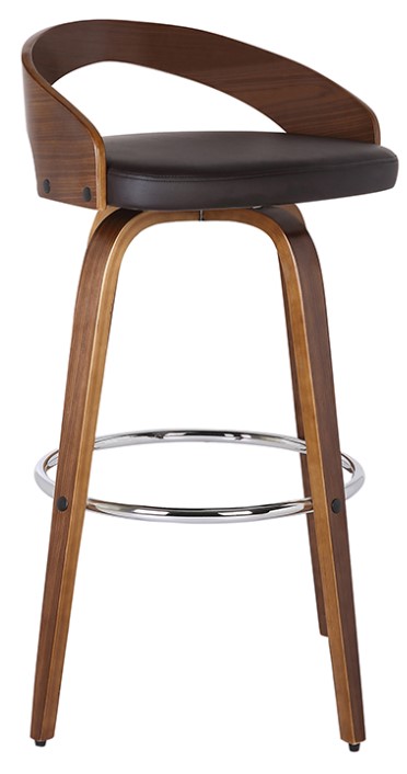 Add Mid-Century Modern design to your home with this Sonia Barstool. It is beautifully designed with a sturdy 360 degree footrest and carefully crafted in top-quality Walnut Wood finish, but also expertly upholstered with Brown faux leather upholstery and Walnut back.Read More