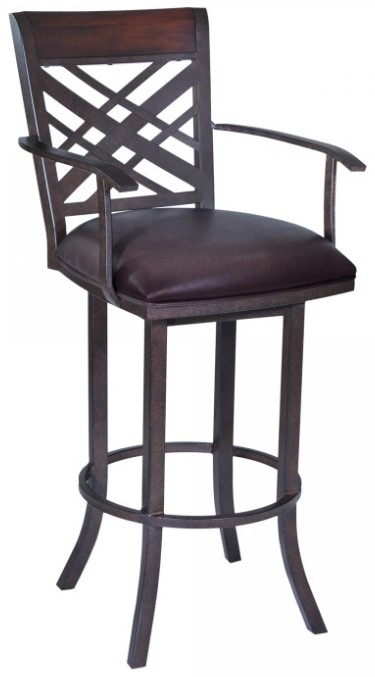 When you combine this Tahiti Arm Counter Stool with the beautiful Auburn Bay finish and pure Brown Faux Leather, this modern take on an island-style barstool completes any island bar look you're going for. It has armrests and footrests that provide additional comfort and convenience. The Tahiti transitional barstool has many ways it can be used in a variety of applications, and even offers the ability to swivel for added accessibility. Available in 26 counter height or 30 bar height. We stand by the quality, the craftsmanship, and the integrity of our product by offering a 1-year warranty for all our products. We want our customers to enjoy our product and we will always be there to help with our top-notch customer service support. Excellent choice for a contemporary dining setting.
