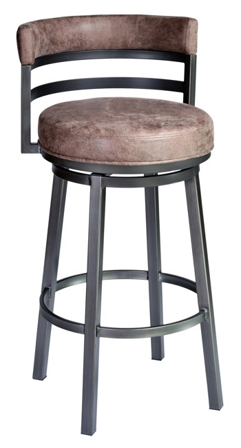 The Titana sports a sturdy metal frame and plush upholstered seat and back. The added 360-degree swivel functionality makes the Titana highly mobile. The Titana is available in two styles Auburn Bay finish with Brown faux leather and Mineral finish with Bandero Tobacco fabric upholstery. Each style comes in your choice of 26-inch counter or 30-inch bar height.