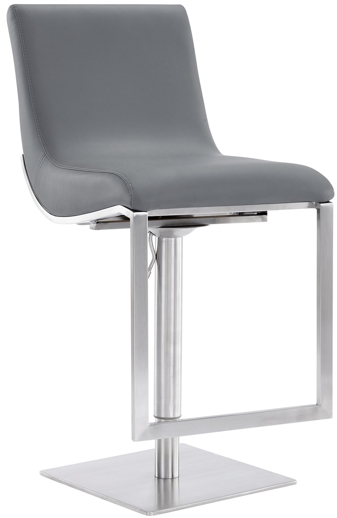 Ultra modern Victory barstool will be a great addition to your bar furniture. This barstool features a brushed stainless steel finish, grey faux leather seat, modern design and adjustable height. Modern design is an inspiration of stability, structure and splendor. Stable chair base and steel construction makes this barstool steady and comfortable. It takes a brilliant design to support such an elegant barstool, which entails a perfect sense of balance and functionality. The Victory barstool can transform your bar area into an ultra modern inviting corner.