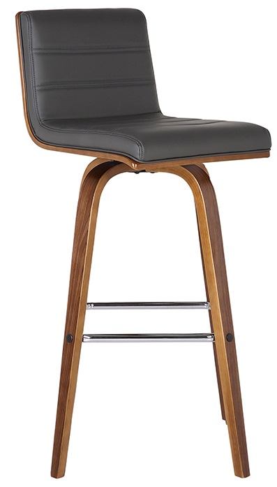 Indulge in luxury with the Vienna Contemporary Swivel Barstool by Armen Living. It is beautifully designed with a sturdy metal framed footrest in expertly crafted in curved walnut wood finish with grey upholstery and walnut brushed wood back.Read More