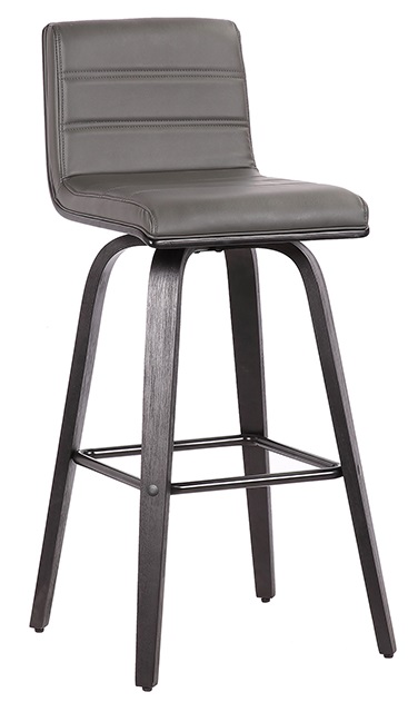 Indulge in luxury with the Vienna Contemporary Swivel Barstool by Armen Living. It is beautifully designed with a sturdy metal framed footrest in expertly crafted in curved black wood finish with grey upholstery and black brushed wood back.Read More