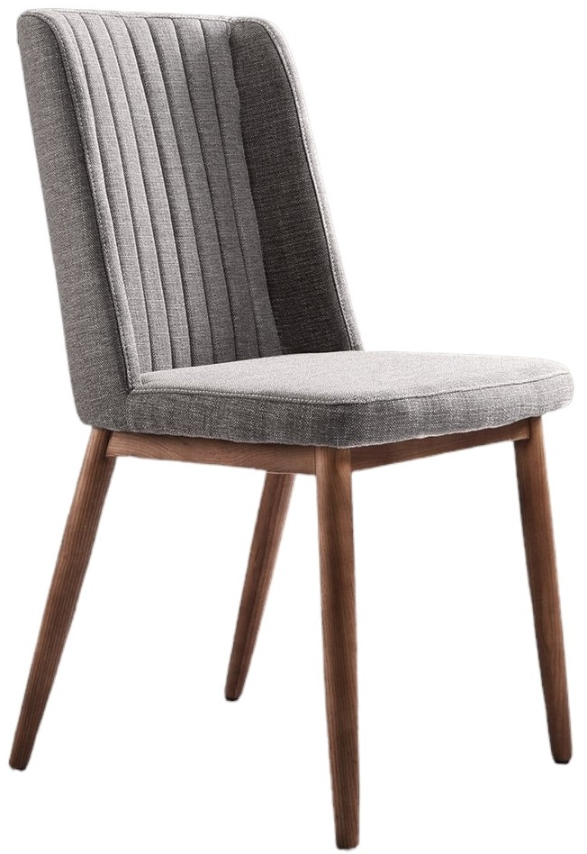 Wade Modern Side Chair in Walnut Wood Finish and Grey Fabric.