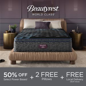 Step up to a world class sleep experience with our premier individualized support + motion separation, breathability and cooling, and responsive pressure relief with a classic, quilted surface. With 100 years of innovation behind us and many, many more ahead, our latest collection shows exactly how people at their best, get their Beautyrest®.Read More