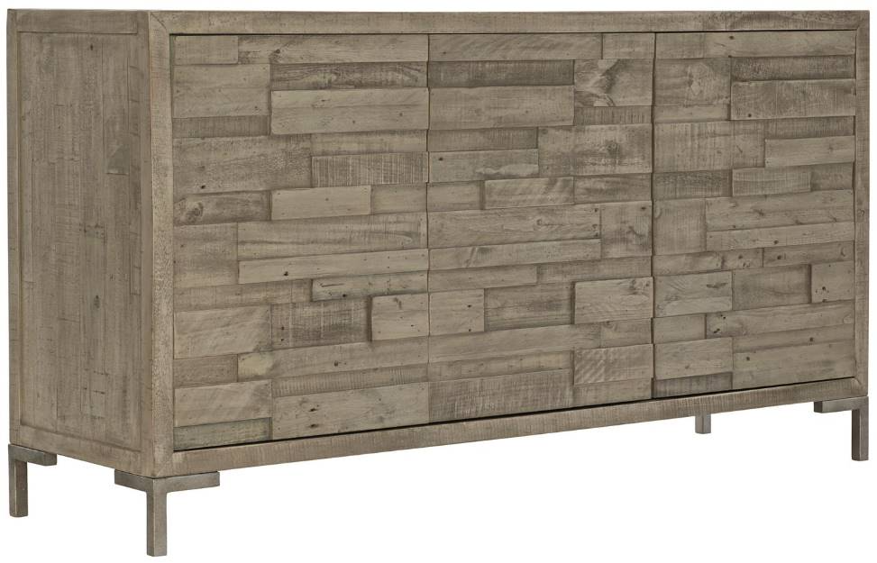 The Highland Park collection blends the best features of mid-century and farmhouse design, delivering an eclectic appeal with a laid-back vibe. The Shaw buffet adds layers of rustic texture to a clean, modern form. Reclaimed pine planks of varying lengths and widths create dimension and lend the feeling of a found object.Read More