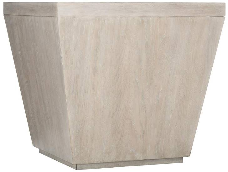 The Landers end table is an upscale design with a unique shape. Scandinavian in essence, this captivating table is crafted from flat-cut white oak veneers in a Cerused Greige finish.