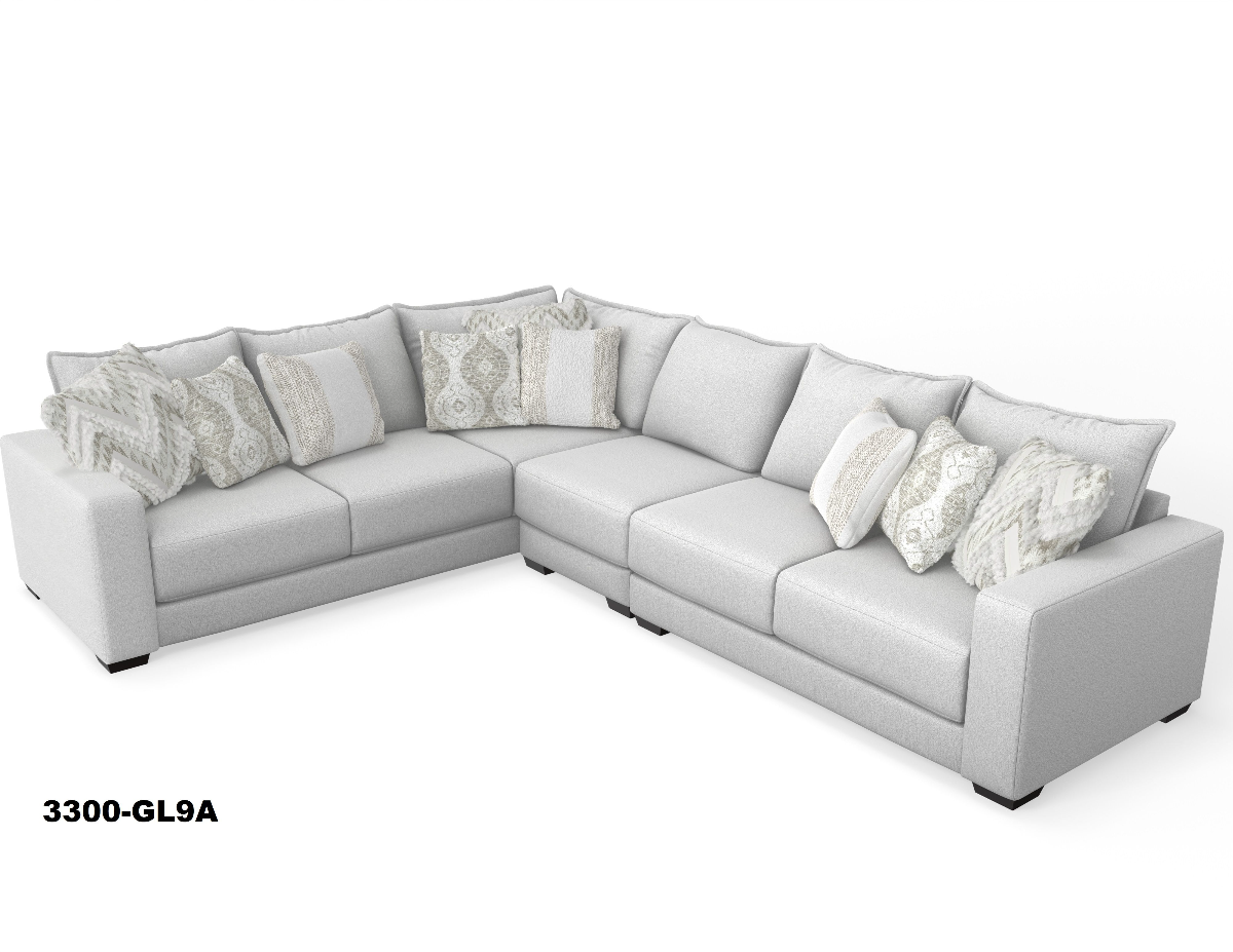 Transform your room with the timeless contemporary Pinnacle sectional featuring the oh-so-comfortable 9” MaxPlush fully reversible seat cushion, with trendy pie crust welts on the reversible back cushions, covered in a domestically manufactured fully cleanable Revolution fabric accented with designer fabric toss pillows. If gray is not your color preference, choose from 10 fashionable fabric combinations to fit your decor.Read More