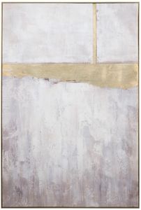 The Crestview Collection Blair Abstract Painting on Canvas with Gold Foil Embellishments was measures 40-inches wide x 60-inches in height. The vertical brush strokes of grey and white carries your eye to the horizontal, gold foil shore that has a single gold pole that extends into the sky to the top of the painting.Read More