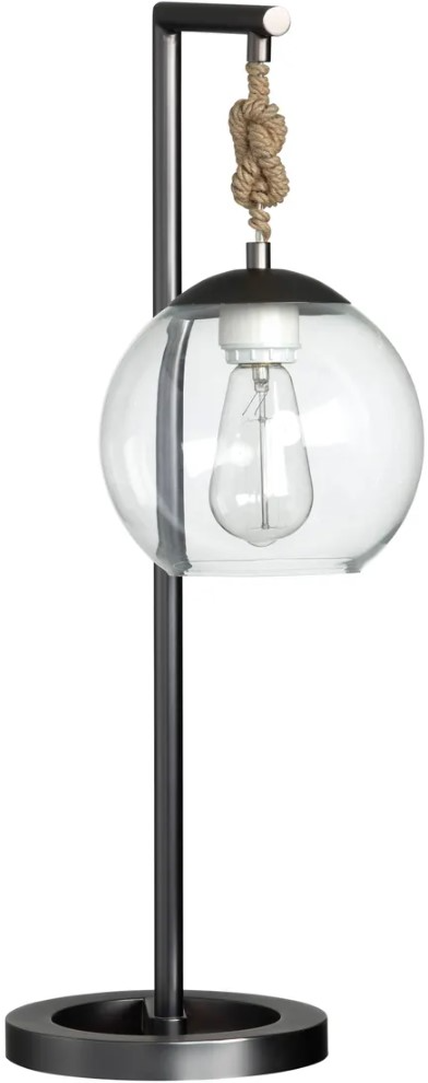 The Crestview Collection Brooks Table Lamp features a gunmetal framework and a blown glass globe suspended from a natural hemp rope. This sturdy and inventive modern style lamp will fit perfectly in an industrial loft or a modern style beach house.Read More