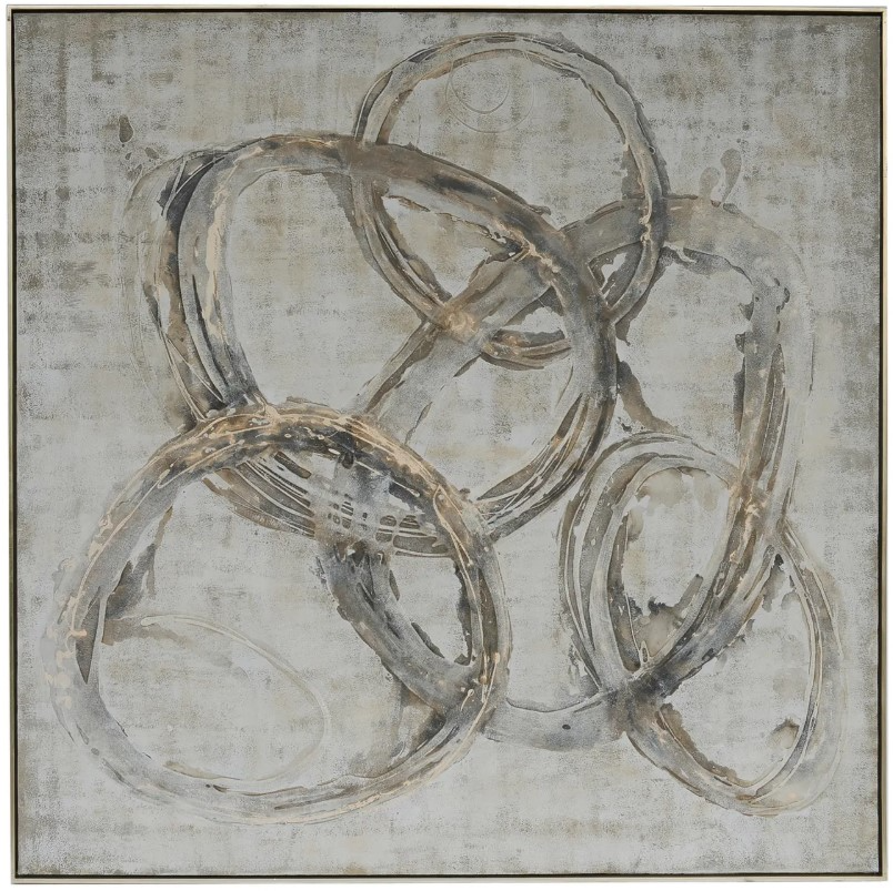 The Crestview Collection abstract solid wood framed oil painting on stretched canvas features tones of gray, tan, and cream. With circles interlocked in this stylish artwork measuring 60-inches square, this discerning painting will blend perfectly in any modern style decor.Read More