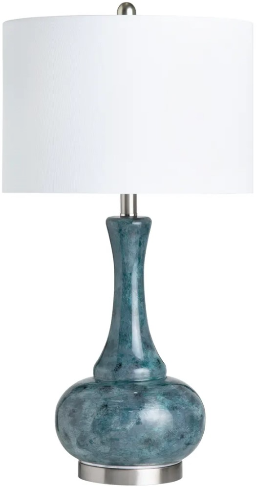 The deep cobalt blue of the Crestview Collection Dixon Table lamp is applied to the genie bottle shape in the age old craft of reverse painted glass giving old world tradition to a modern shape.Read More