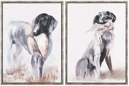The Crestview Collection Duck Dogs is a great decor piece for any hunting dog-lover. This set of two images printed on canvas depicts hunting dogs carrying ducks. Shades of brown, black, and tan give this set a warm palette that will enhance your home.Read More