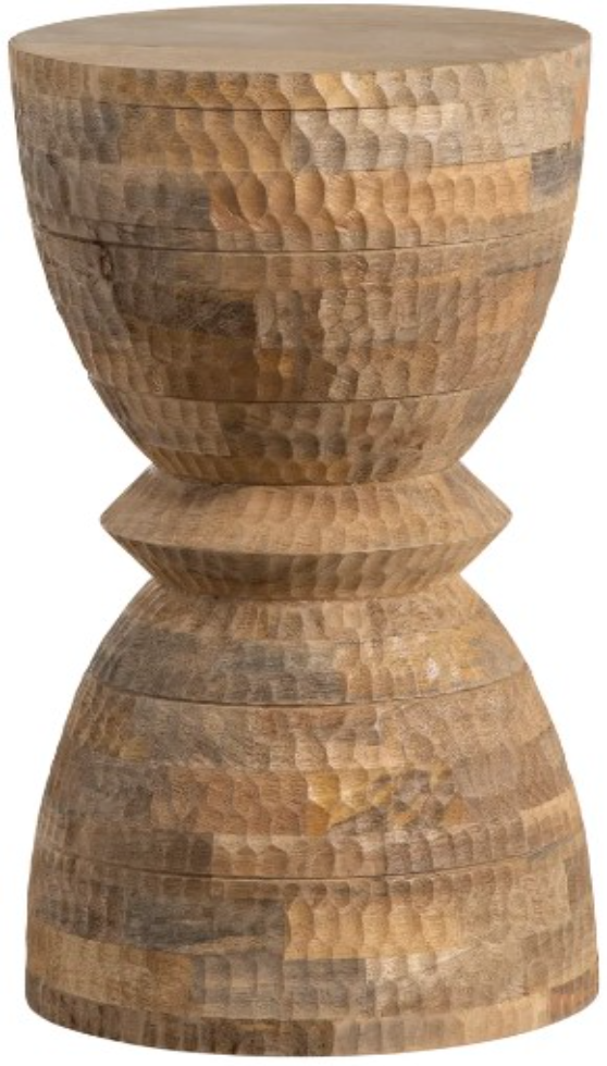 The table is expertly handcrafted using high-quality materials, ensuring durability and longevity. The black finish adds a touch of sophistication, while the rustic details exude a sense of natural beauty. Its distinctive design pays homage to tribal artistry, creating a visual masterpiece that sparks conversation and intrigue. The dimensions of the table are thoughtfully designed to provide both functionality and artistic flair. With a compact size, it fits seamlessly into any room, making it versatile for various spaces. The tabletop provides ample space for placing a lamp, your favorite book, or a cup of coffee, while the base offers stability and balance. Whether you choose to display it in your living room, hallway, or office, this accent table instantly transforms any area into a captivating sanctuary. Its eccentric nature makes it an excellent conversation starter, allowing you to showcase your unique style and appreciation for artistic expression. The Native Accent Table is not just a piece of furniture; it's an embodiment of cultural heritage and creativity. Embrace the fusion of rustic aesthetics and tribal inspiration, adding an enchanting touch to your surroundings. Elevate your decor and let this extraordinary piece of artistry redefine your space.