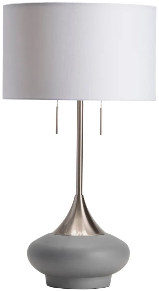The Crestview Collection Hayden Table Lamp is simplistic yet stylish. With a contemporary orb shape of polished concrete and brushed stainless components, this sophisticated large scale lamp features a double socket with twin pulls and is topped with a crisp white linen drum shade.Read More