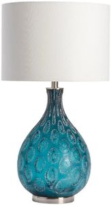The Crestview Collection Pearson Table Lamp has a colorful design that will liven up any room in your home. The bulb-shaped body has a striking blue color with a reactive glaze that resembles a geode. A bright white linen drum shade complements the bold jewel tone on the glass body.Read More