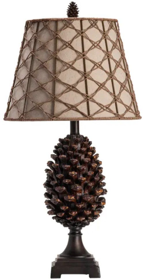 The Crestview Collection Pine Bluff Table Lamp brings a wonderfully big dose of rustic style to your home. The cast resin base in the shape of a single oversized pine cone might make you dream of a hike in the woods.Read More