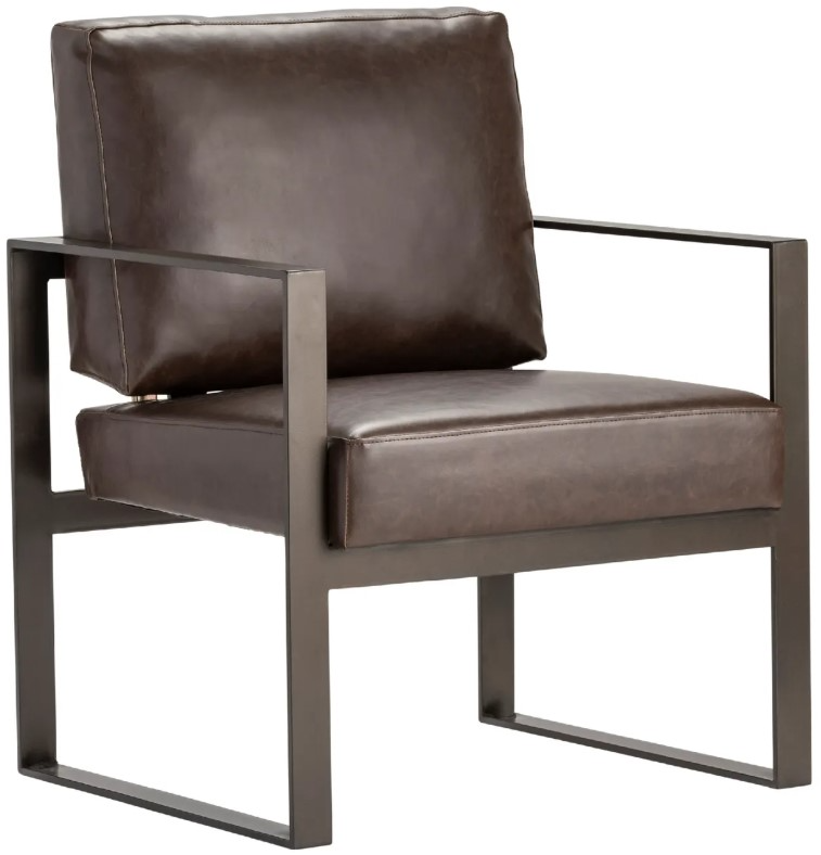Dark brown faux leather upholstery adds a rich, classic look