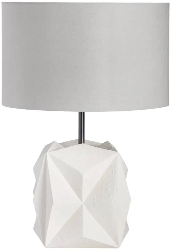 Exaggerated in scale and style, the Crestview Collection Ryker Table Lamp makes a bold statement in any interior. Composed of cast resin in a faceted design, it has a white plaster finish and is topped with a textural gray linen drum shade.Read More
