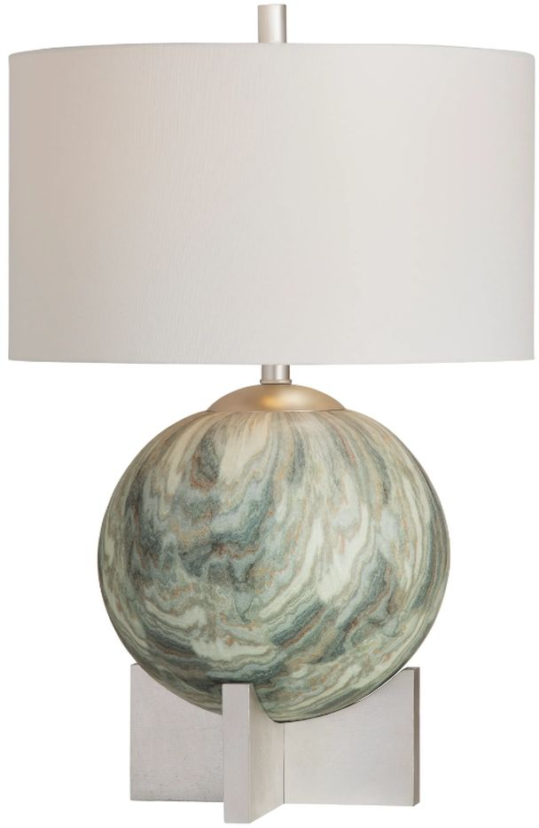 Solace table lamp features a soothing green base with a subtle glaze, paired with a classic fabric shade. Its clean silhouette and calming color bring warmth and balance, making it an ideal accent for bedrooms, living rooms, or relaxed transitional and contemporary spaces interiors.Read More