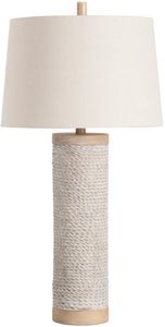 The Sutcliffe Table Lamp by Crestview Collection boasts a whimsical, nautical theme. The resin cylinder is carved to resemble roping and has a faux wood base and cap. The sandy, white-washed finish and natural linen shade lends a neutrality that makes this casual lamp a versatile addition to many decor styles.Read More