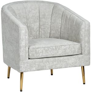 Curl up or plop down for a rest on this Crestview Collection Sutton Metallic Leg and Champagne linen fabric Upholstered Channel Back Chair. This chair's balanced cushioning gives you just the right amount of structure so that you can curl up with a book without nodding off.Read More