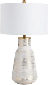 Crestview Collection's Trinity Table Lamp features a stunning vase shaped ceramic with a gloss white finish, beautifully accented with gold stria highlights that add a touch of glamour. The white linen shade beautifully compliments the elegant simplicity of the body.Read More