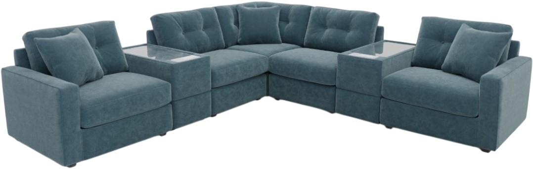 Elevate your living space with the versatile and stylish 7-Piece Sectional from the New Horizon Collection. Designed with contemporary aesthetics and unmatched comfort in mind, this sectional features soft teal upholstery that effortlessly complements any interior palette.Read More