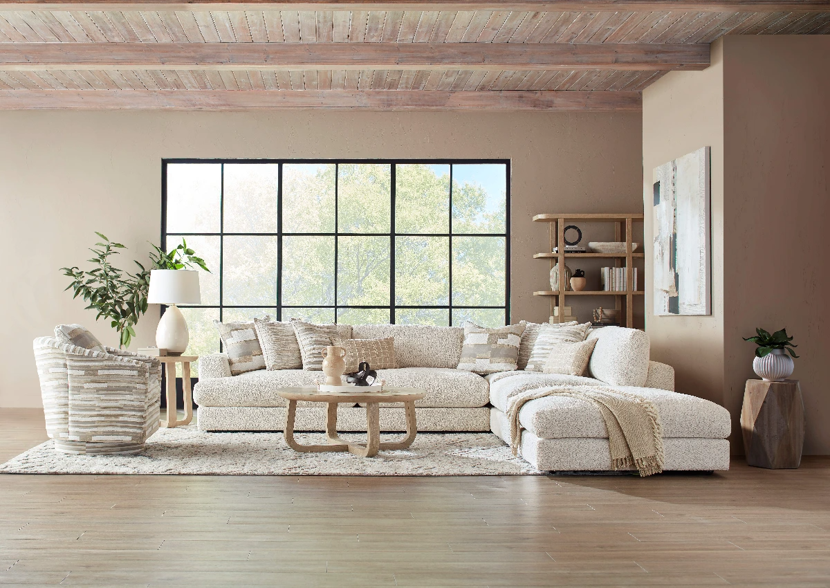 The Montecito River Rock 4-Piece Sectional blends casual elegance with cozy comfort. Upholstered in a soft, neutral river rock fabric, this spacious sectional features plush cushions and a stylish design, perfect for lounging and entertaining.Read More