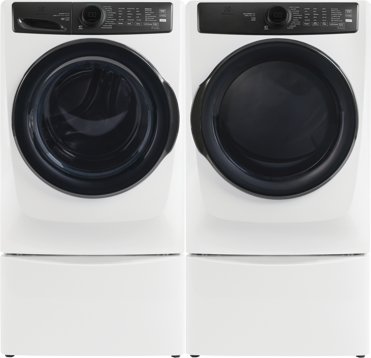 The Electrolux front load washer in matte white finish provides the most effective stain removal with SmartBoost premixing technology, even in cold water. With new features like Cold Sanitize and a Care Meter to help make sustainable selections easier, this machine is optimized to perform in cold water. It features the industry's first Adaptive Dispenser that accepts detergent packs to give you the flexibility to clean with all detergent types. Features like Optic Whites and Perfect Steam provide better care for fabrics, giving your favorite clothes a longer life.