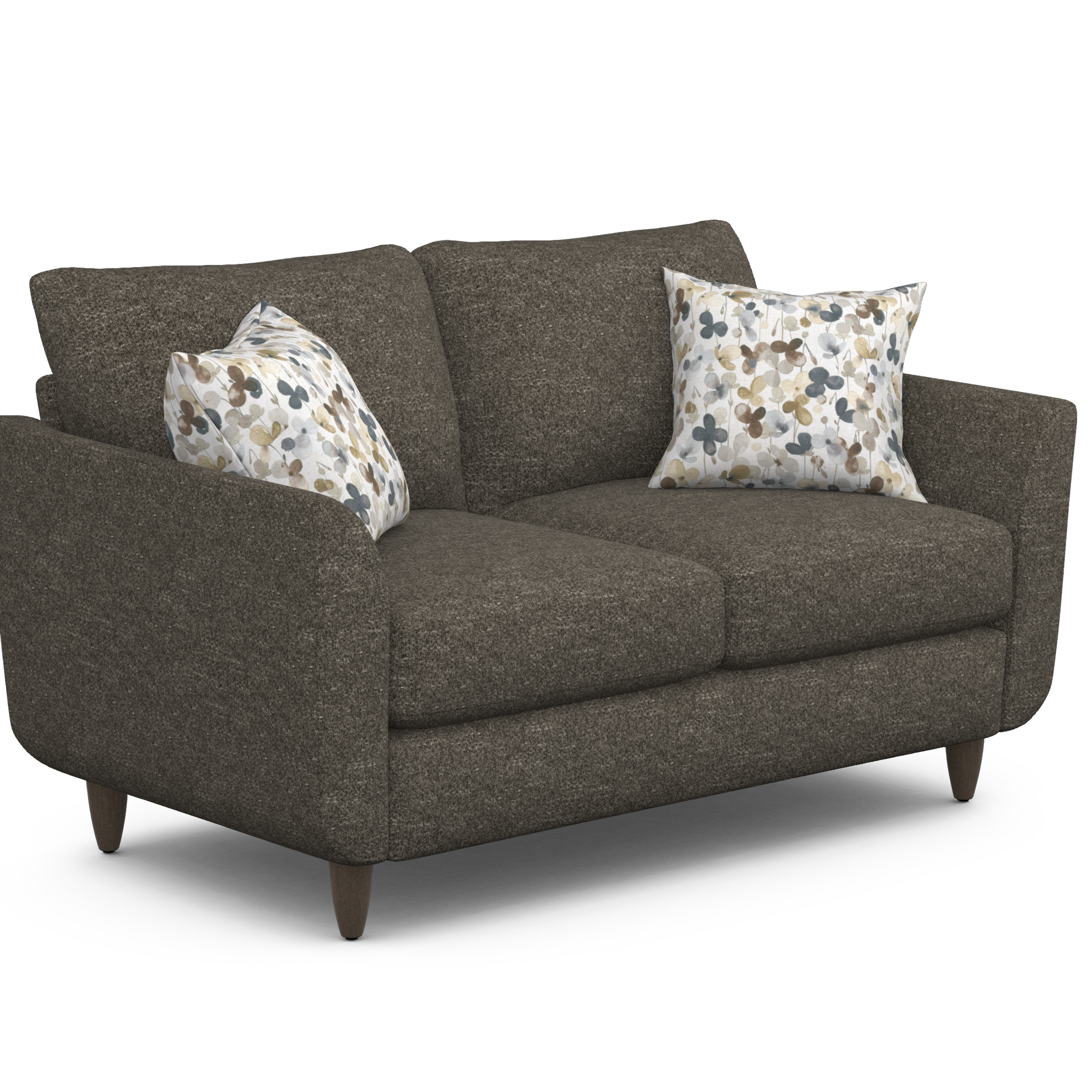 Retro Flair. Add some mid-century modern chic to your living spaces with the Mia loveseat. Rounded corners, sloped flare arms and tapered legs provide a classic retro feel, while soft lines and wide, plush boxed seat cushions invite you and your guests to unwind in total comfort.Read More