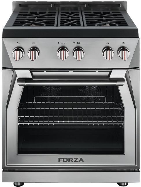 The Forza 30 inch all gas range model offers a unique Italian radical design and outstanding performance through: 4 high efficient full brass burner, Infinito™ Grate System, MassimoBlu™ Double Broiler System and the industry’s widest oven capacity compatible with a commercial sized tray. It is available in six color options. Perfect from primipiatti to dessert.Read More
