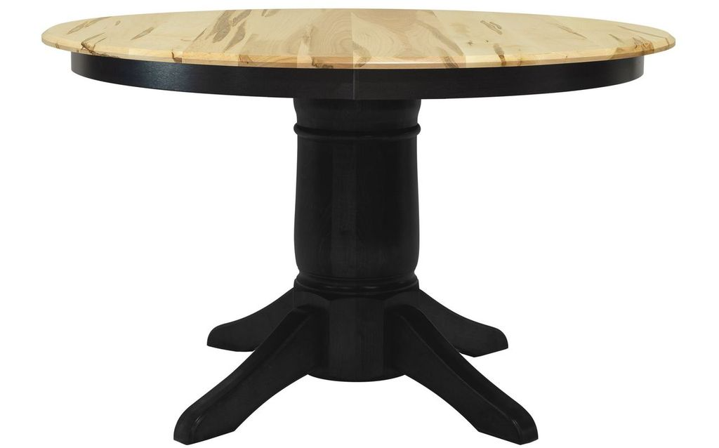 Gascho Furniture Riley Two-Toned Pedestal Dining Table. Round top includes 18" leaf extension for additional dining surface area.Read More